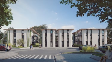 Il complesso prevede la realizzazione di tre edifici plurifamiliari di tre piani, concepiti come un modello abitativo standardizzato che può essere facilmente riprodotto in altri contesti urbani.