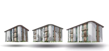 La modularità del progetto consente inoltre di affiancare più edifici identici o simili all’interno dello stesso intervento urbano, creando complessi residenziali più ampi senza aumentare in modo significativo la complessità costruttiva.