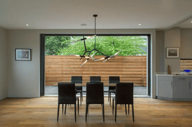 Zona living open space con sala da pranzo integrata