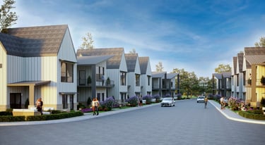 Il progetto si sviluppa su circa 13 acri e prevede 80 abitazioni unifamiliari di circa 126 m². Le unità seguono una tipologia compatta e ripetibile, con:
